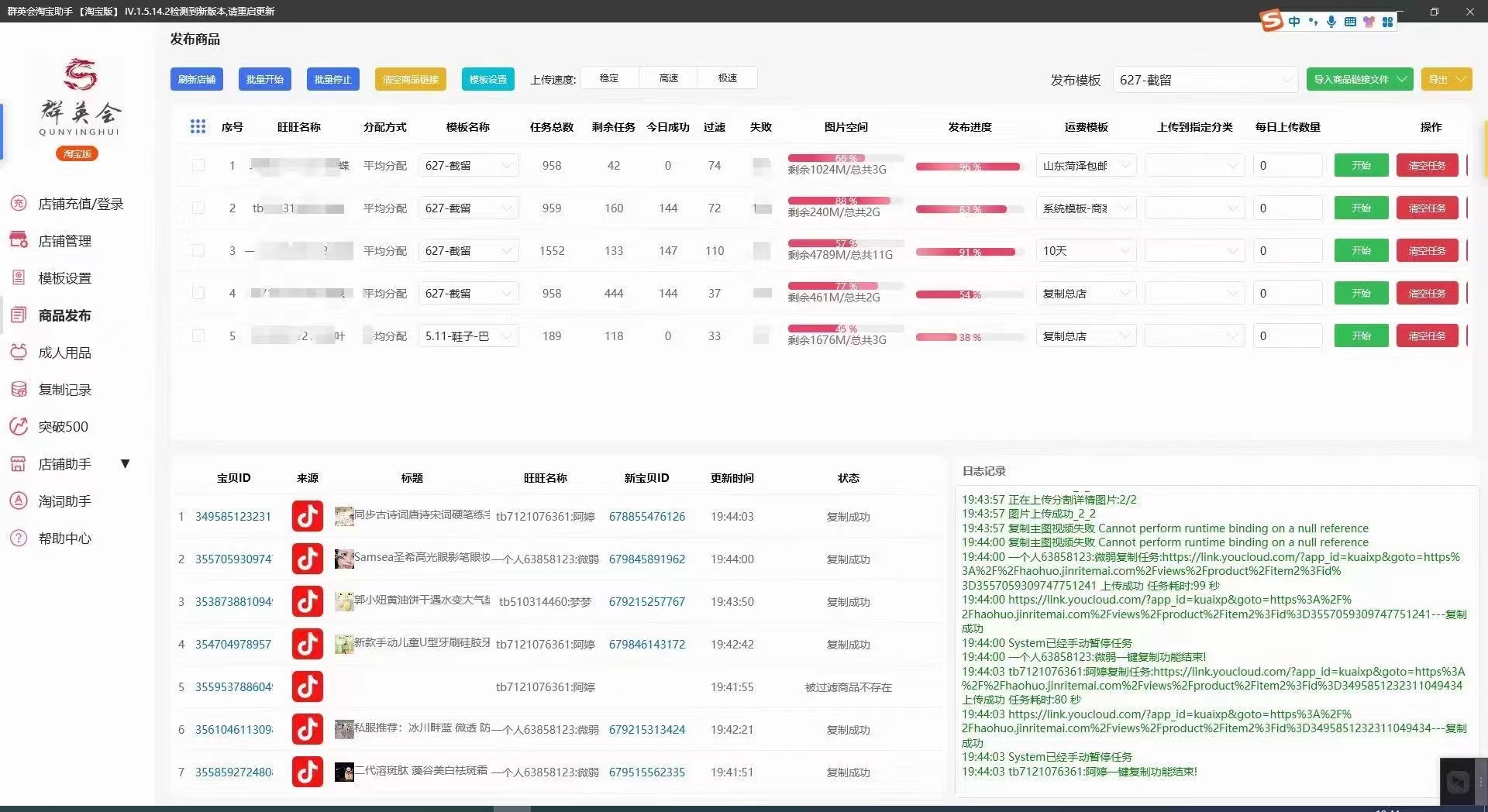 每分钟发布20个宝贝,不限制发布数量,可以支持群控,多店多线程发布